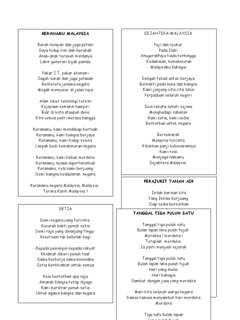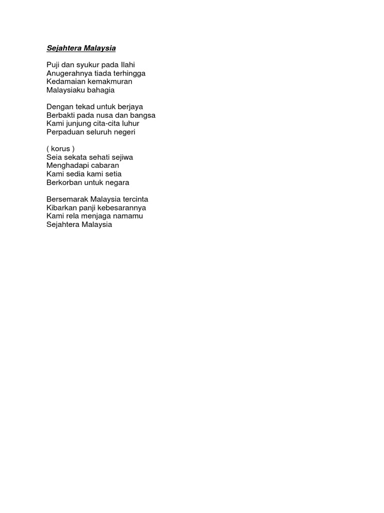 Related : Lagu Sejahtera Malaysia Lirik - Puji dan syukur pada ilahi anugerahnya tiada terhingga kedamaian kemakmuran malaysiaku bahagia..