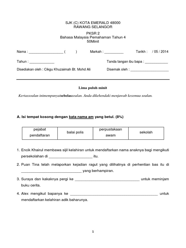 Ujian Pemahaman Bahasa Malaysia Tahun 4 Sjk from imgv2-2-f.scribdassets.com We did not find results for: Check spelling or type a new query. Maybe you would like to learn more about one of these?